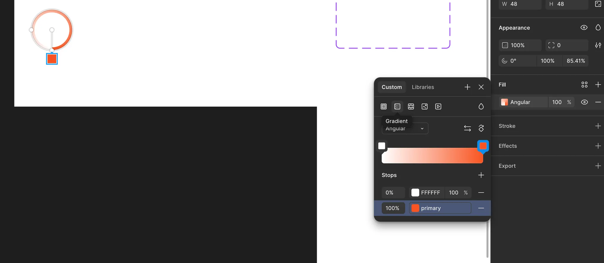- Angular Grandient란 색이 중심을 기준으로 각도에 따라 회전하며 변화하는 것입니다.