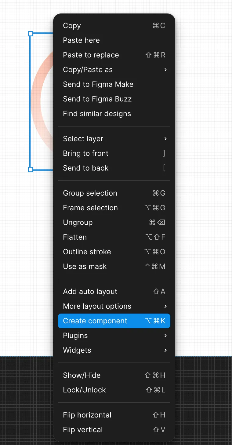 - 그다음에 이걸 컴포넌트로 만듭니다. 오른쪽 마우스를 눌러서 Create Component를 선택합니다.