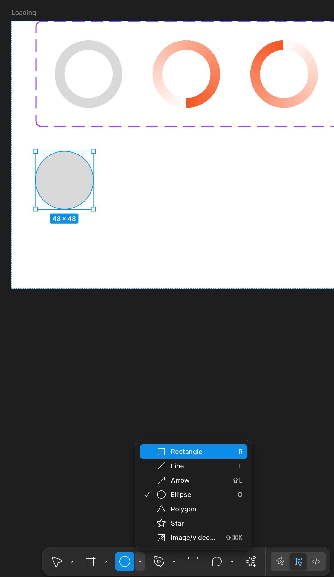 - 아래 메뉴바에서 Ellipse를 클릭해서 원형을 만듭니다.